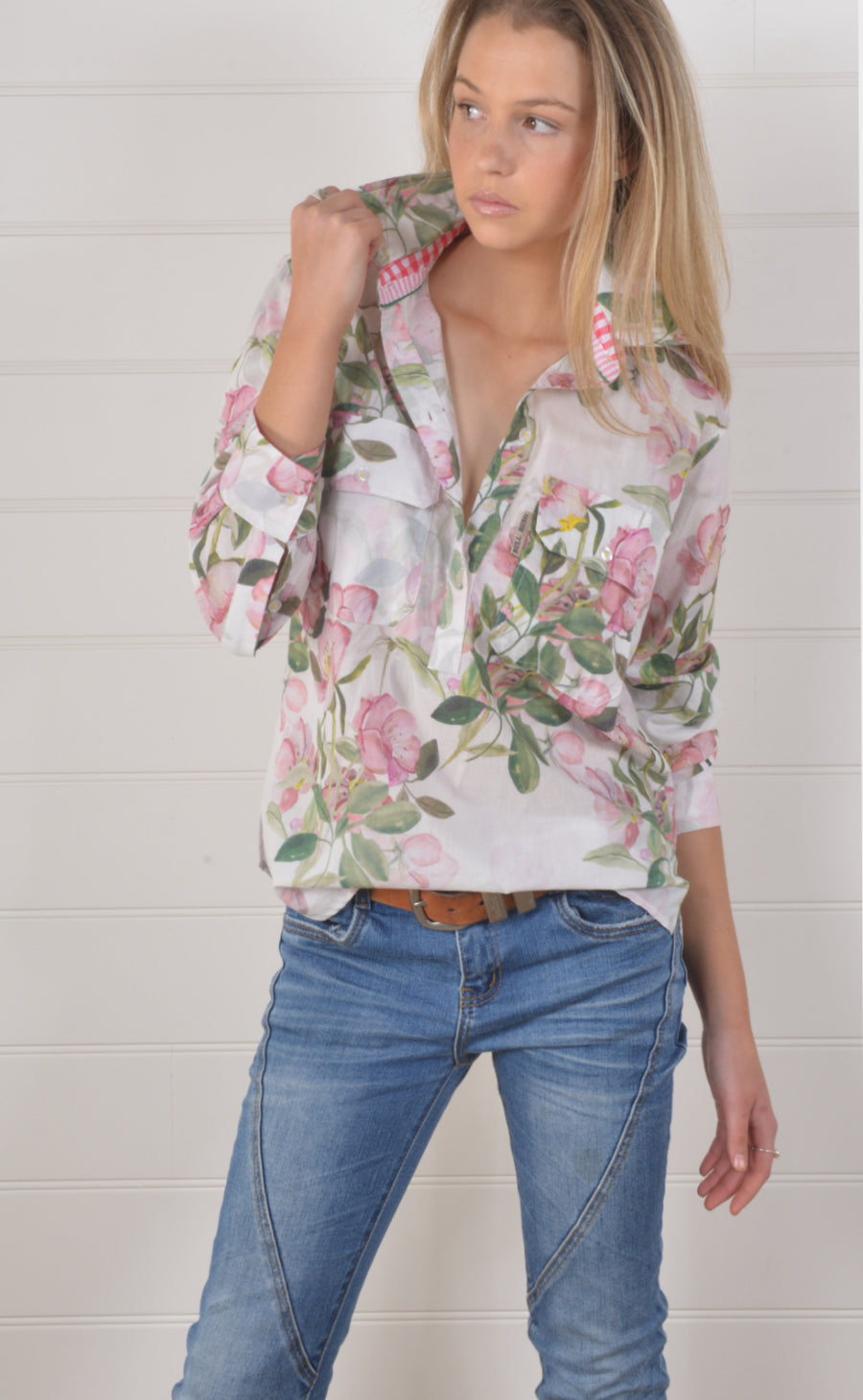 Fall in love with our unique print, inspired by the Coco rambling rose. This stunning top