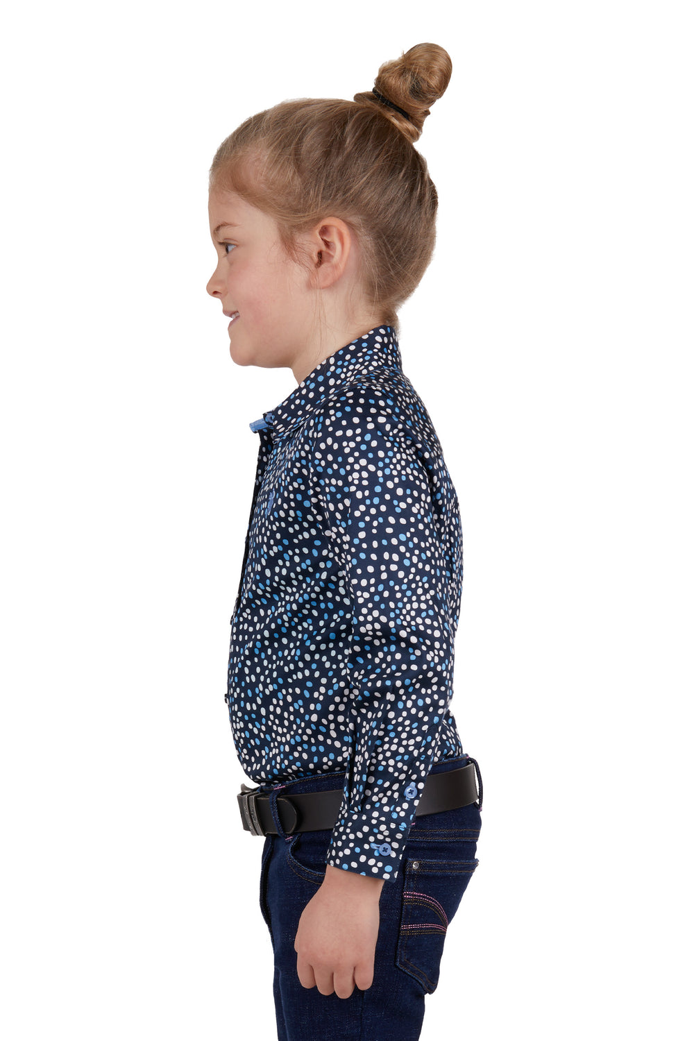 Thomas Cook original hand drawn print, stretch for comfort and movement, contrast facings under collar, inside collar stand and sleeve cuffs, velvet taping on inside neck and sleeve cuffs, back waist darts, pintuck detail at sleeve cuffs, horseman embroidery on chest
