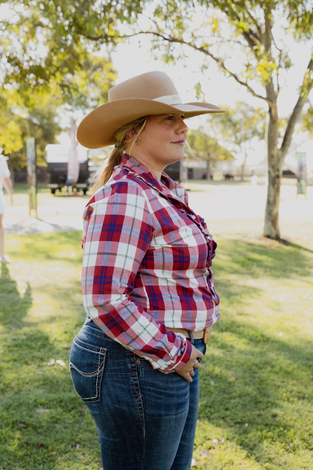 The Kirby Shirt in Red Check combines thoughtful tailoring with everyday wearability. Precision darts through the front and back create a refined silhouette that flatters your frame, while the soft cotton construction promises comfort and longevity. Distinctive ruffled detailing adorns the roll-neck collar, button placket, and cuffs, adding visual interest without compromising practicality. This versatile piece transitions seamlessly from casual to polished occasions, delivering both style and substance in a single wardrobe essential