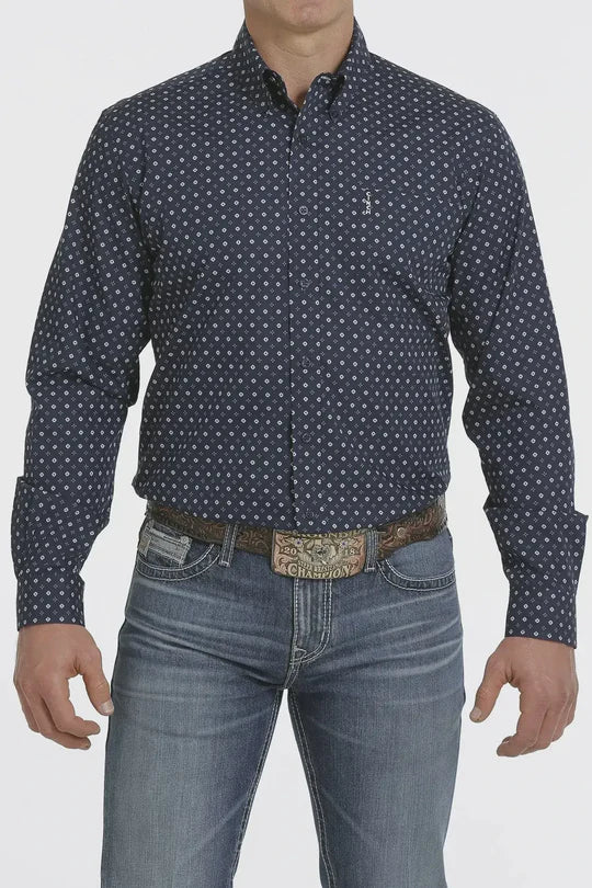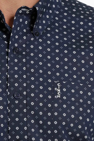 - Navy with small white geo print