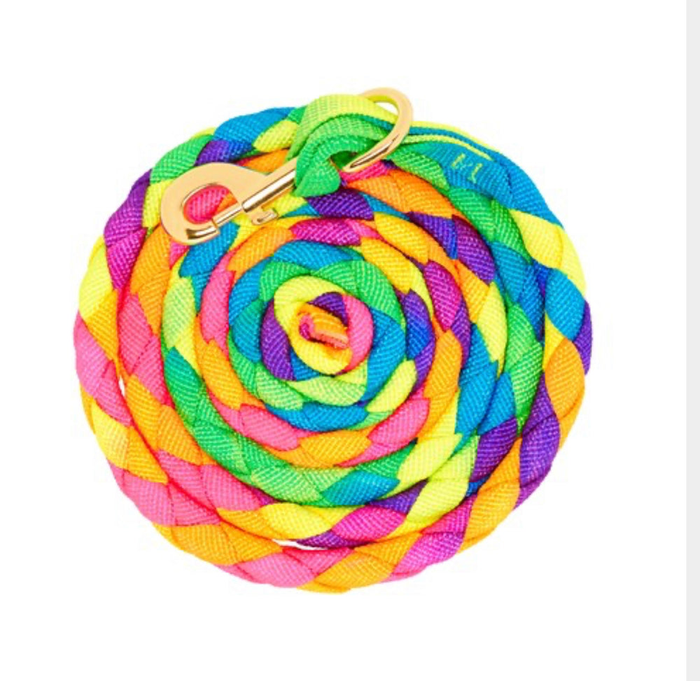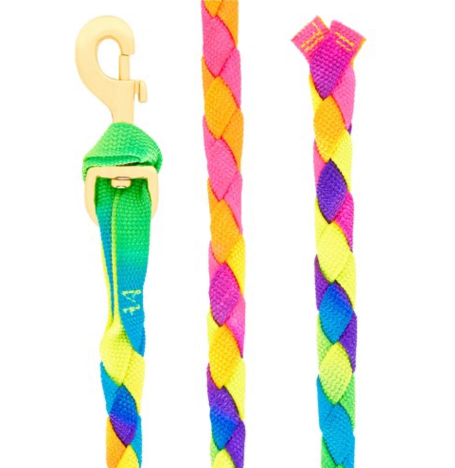 • Looks good with the Bambino Rainbow Halter, however they are not a complete match. This lead rope is more fluro.