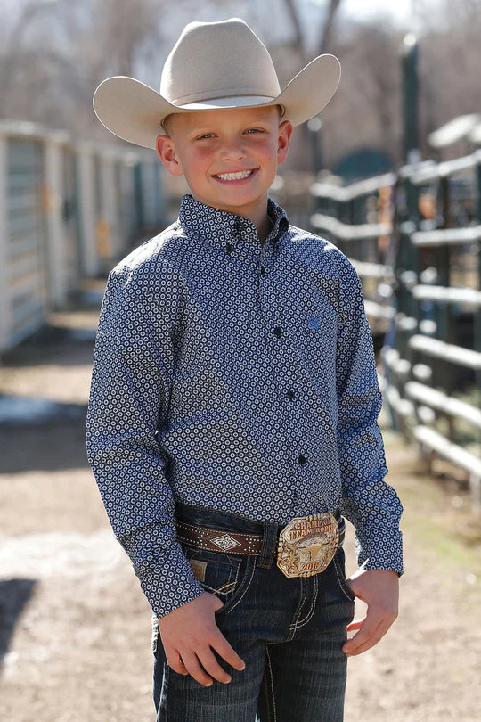 Cinch - Boys Black Print Button Down Shirt