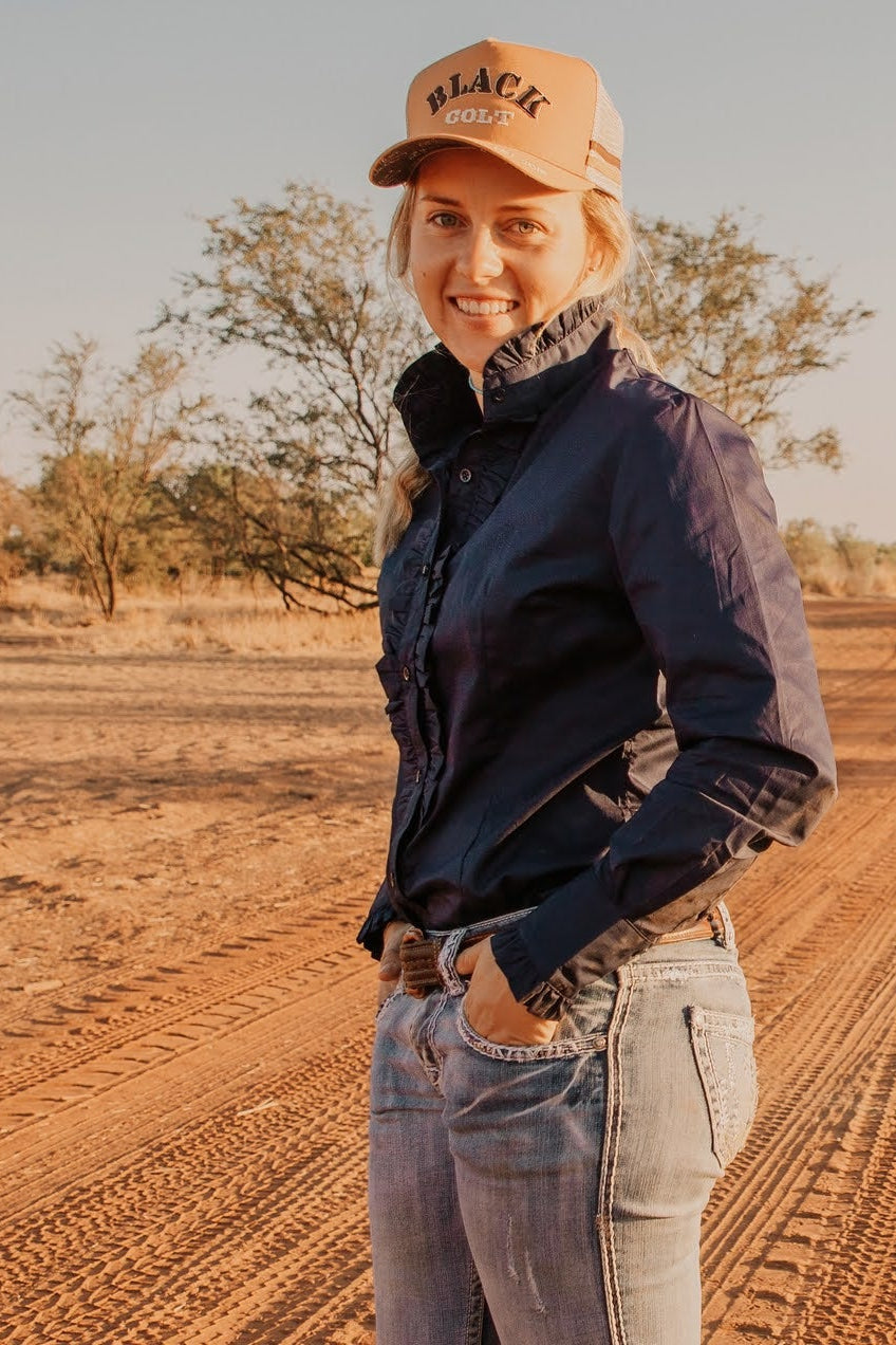 Looking for an eye-catching and empowering look? Meet Kirby. Her figure-flattering silhouette, with front and back darts, will keep you looking stylish and confident all day, every day. Made from soft and durable cotton, Kirby features stunning ruffles on her roll-neck collar, center buttons, and full-length cuffs, making you the boldest and brightest person in the room.
