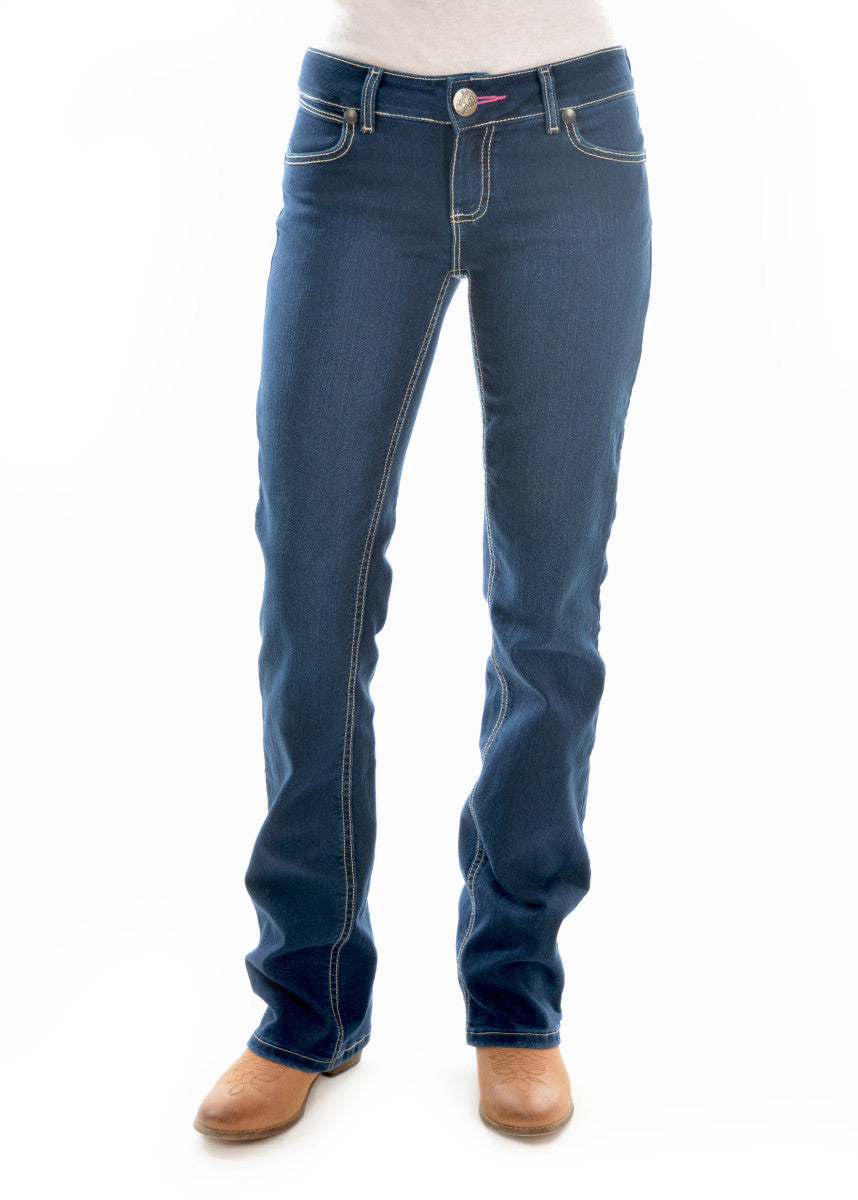 Classic mid rise jeans that are built for comfort. Decorative pocket styling with embroidered detail for a bit of extra flair!