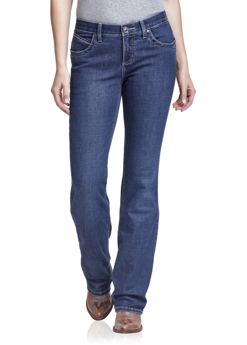 34 Inch Leg, sits below waist, no gap elastic waistband, flat seams, angled patch watch pocket, two front scoop pockets, comfort fit seat and thigh, boot cut